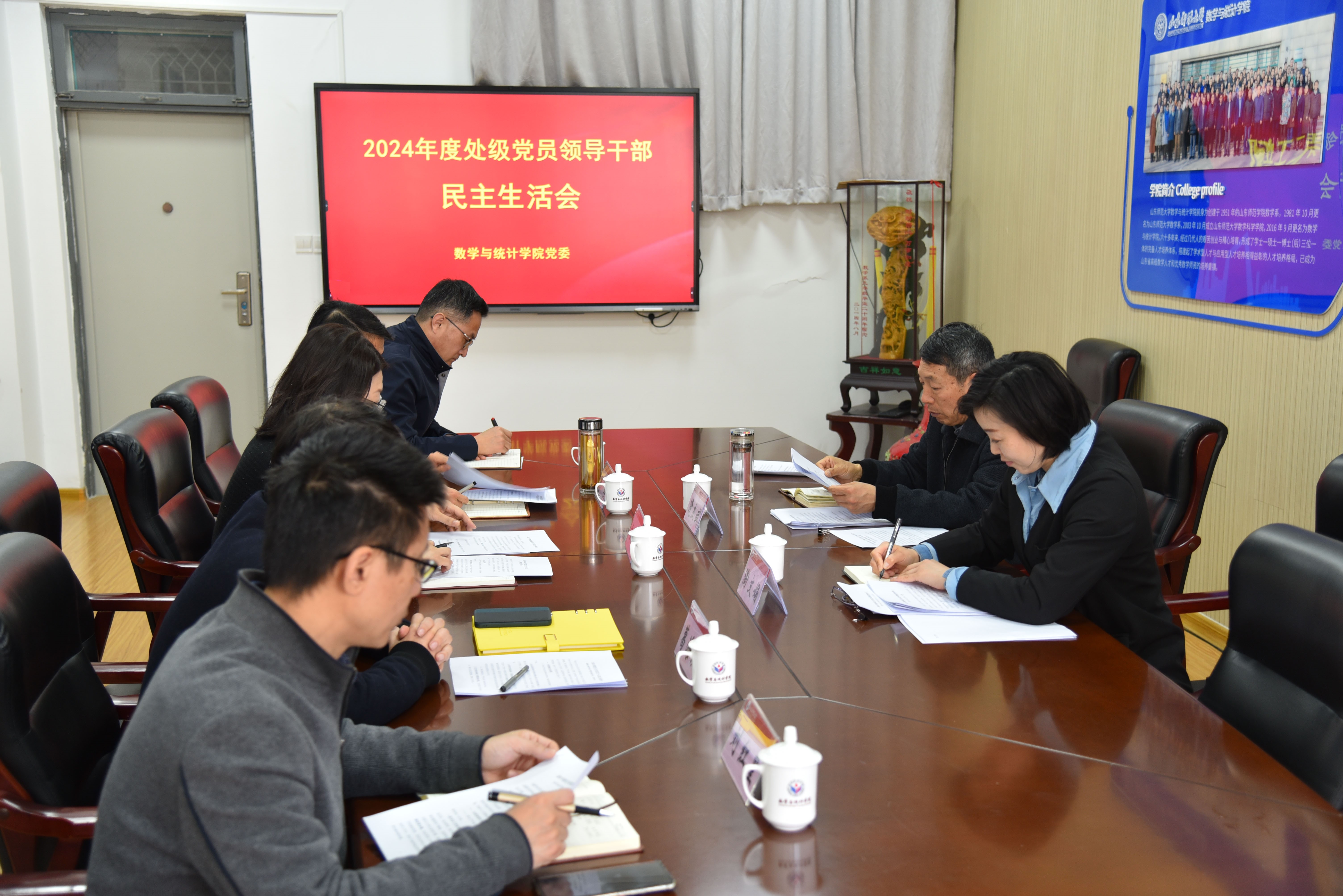 2月28日上午,数学与统计学院2024年度处级党员领导干部民主生活会在长清湖校区文渊楼B115会议室召开。学校第一督导组逄杰武、陶文娟到会指导。会议由党委书记向玉贞主持。