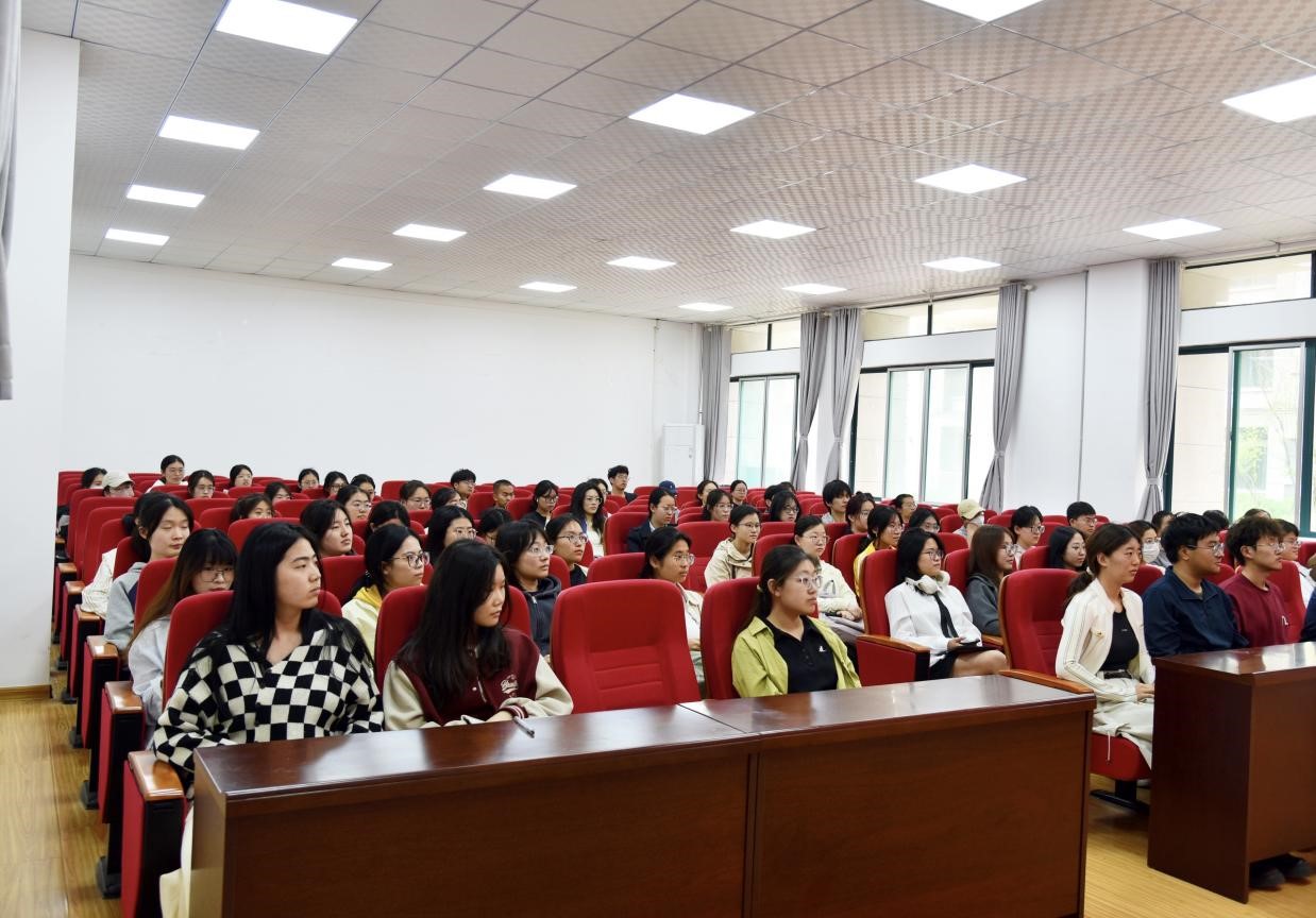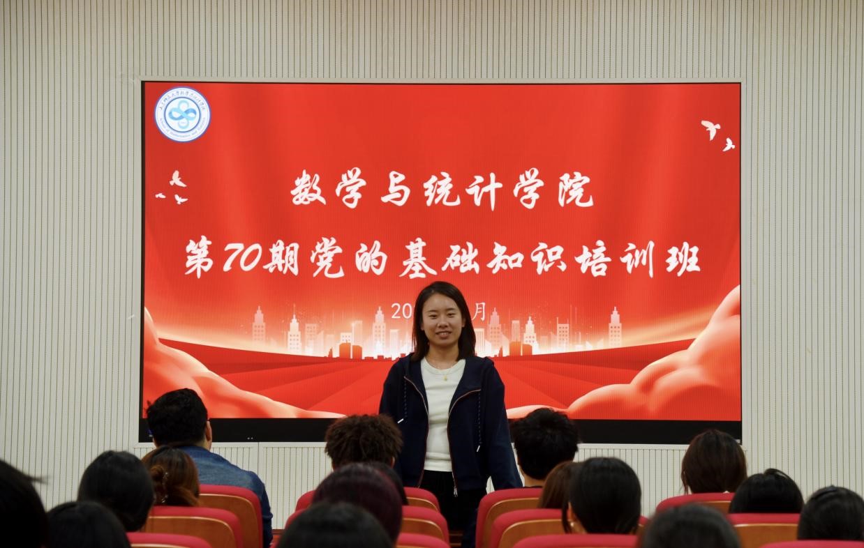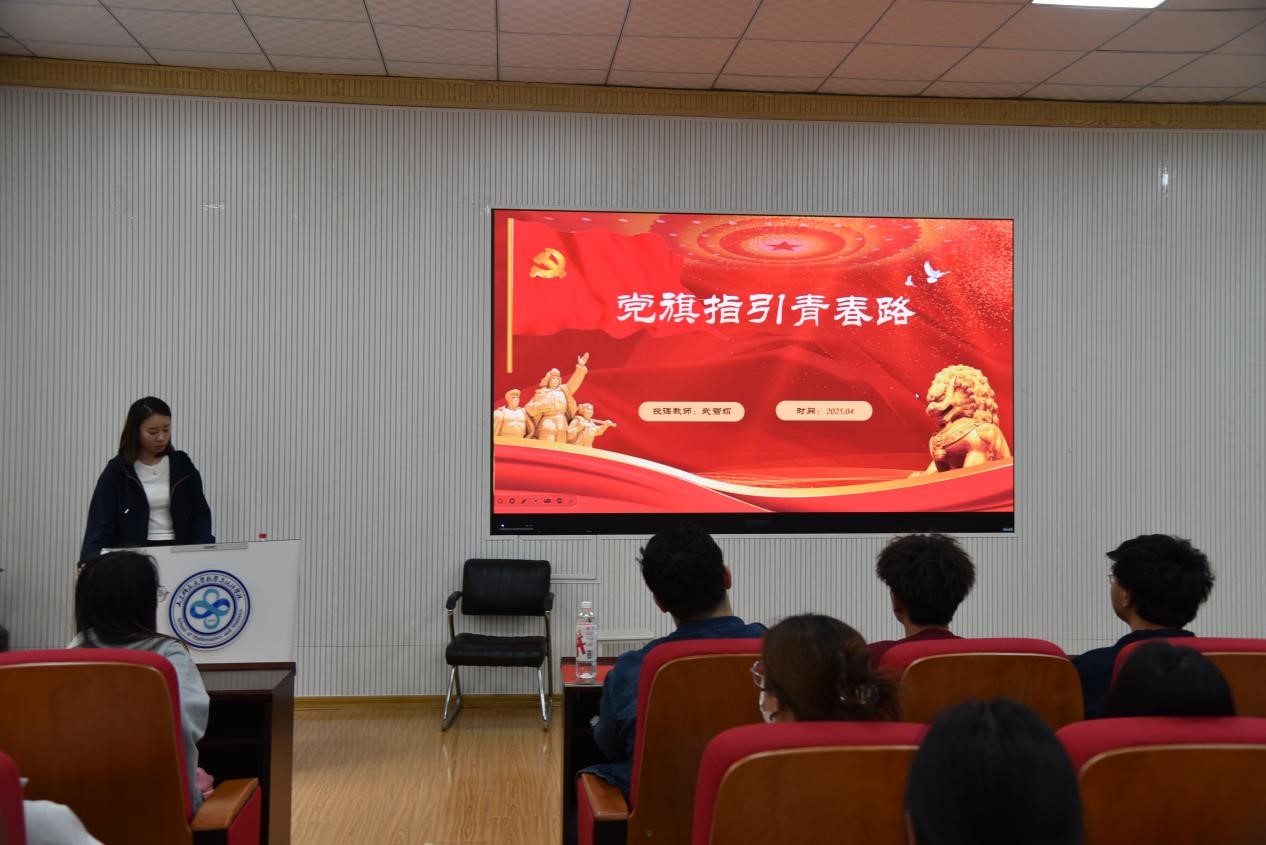 4月18日,我院于文渊楼B119报告厅举办了入党积极分子培训班之“党旗指引青春路”主题党课。本期党课由培训班班主任阮慧利主持,2024级辅导员、本科生第二党支部书记武雪娟主讲,培训班全体学员参加。