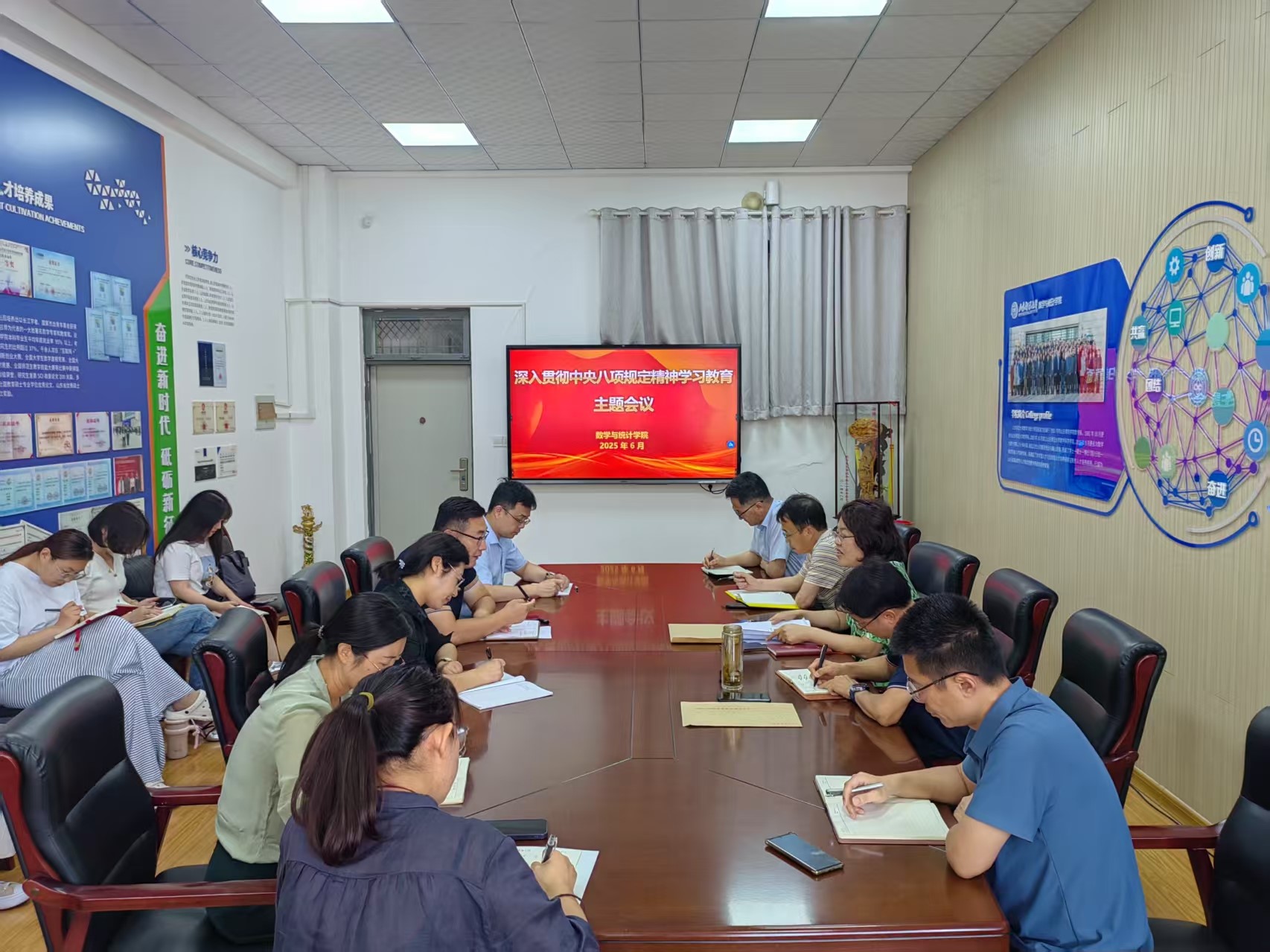 为扎实推进深入贯彻中央八项规定精神学习教育,推动学习教育见行见效,6月16日,数学与统计学院党委召开深入贯彻中央八项规定精神学习教育专题工作会议,学院党委委员、各党支部书记参加会议。会议由党委书记向玉贞主持。