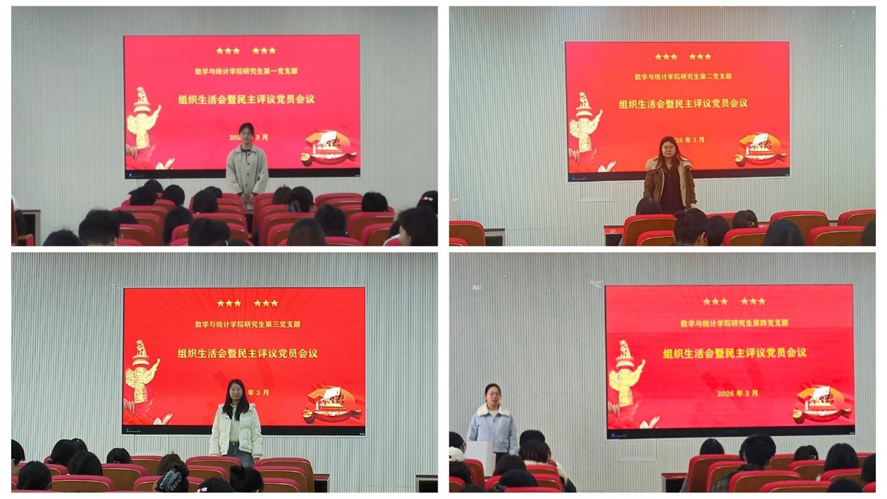 近日,数学与统计学院各党支部召开了组织生活会暨民主评议党员会议,会议由各党支部书记主持,全体党员参会,党员领导干部以普通党员身份参加所在支部会议,取得了良好成效。