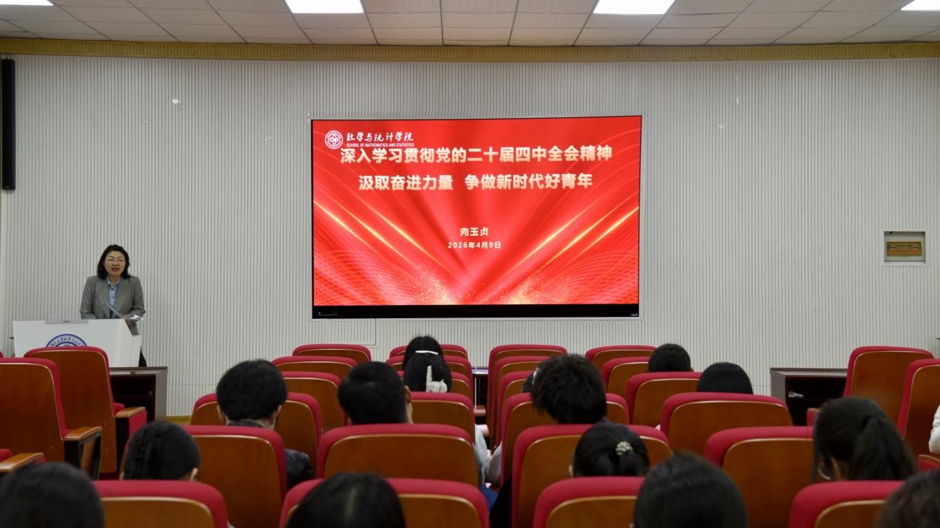4月9日,数学与统计学院在文渊楼B119报告厅举办入党积极分子培训班主题党课。主题党课由学院党委书记向玉贞主讲,学院第72期党基培训班全体学员参加学习。