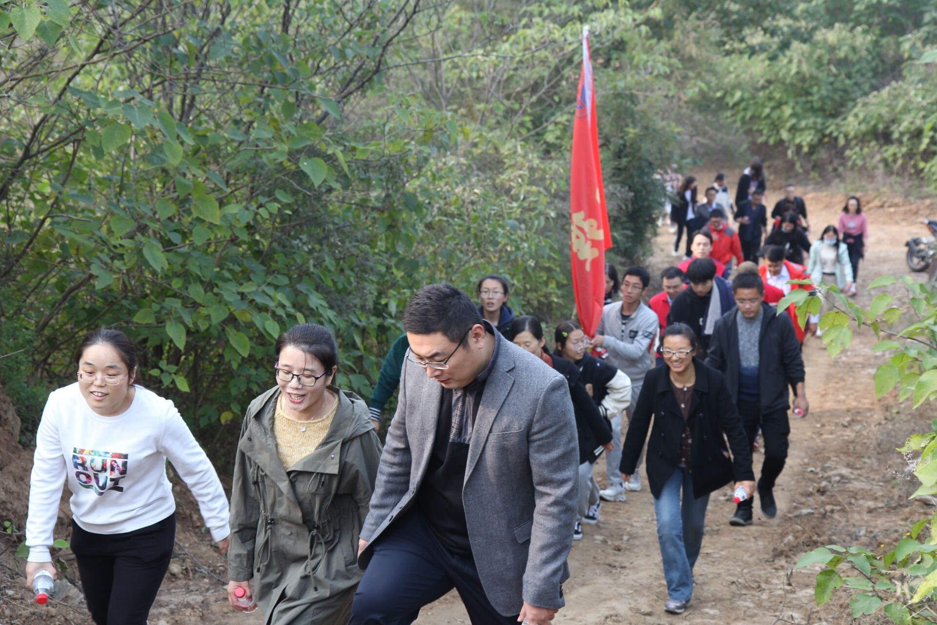 下午两点三十分,登山活动正式开始。我院队伍在管煜老师的带领下,从集合地出发,沿青石路而上,向目的地行进。登山过程中,老师们相互帮助,相互鼓励,充分发扬了团结拼搏的优良作风,展现了数学与统计学院队伍昂首奋进、奋勇争先的精神风貌。登山途中大家也感受到了户外运动的魅力,真切感受大自然的美丽,感受人与自然的和谐,领略了大自然的美好风光。