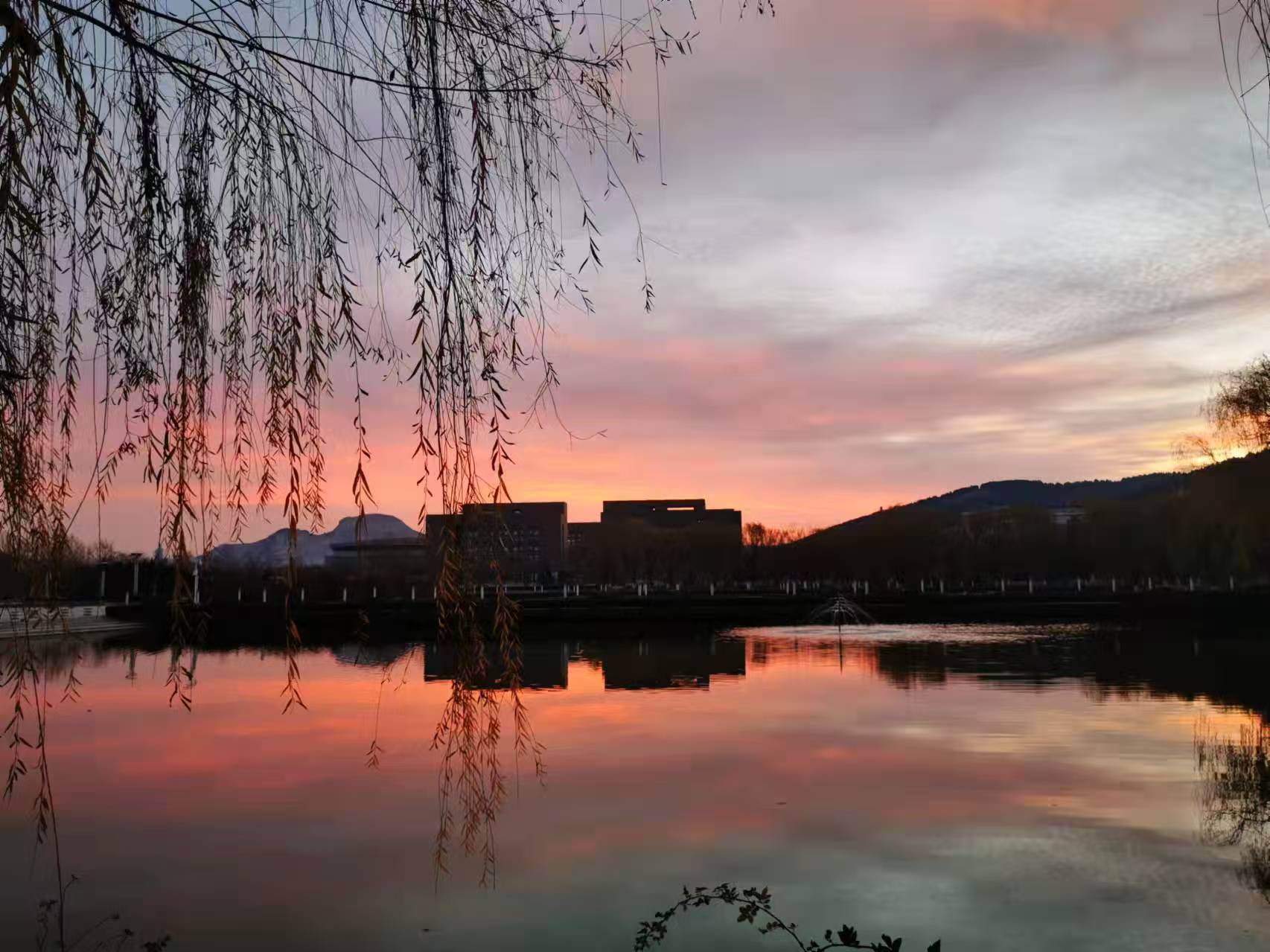 朝霞映垂柳 醉美长清湖