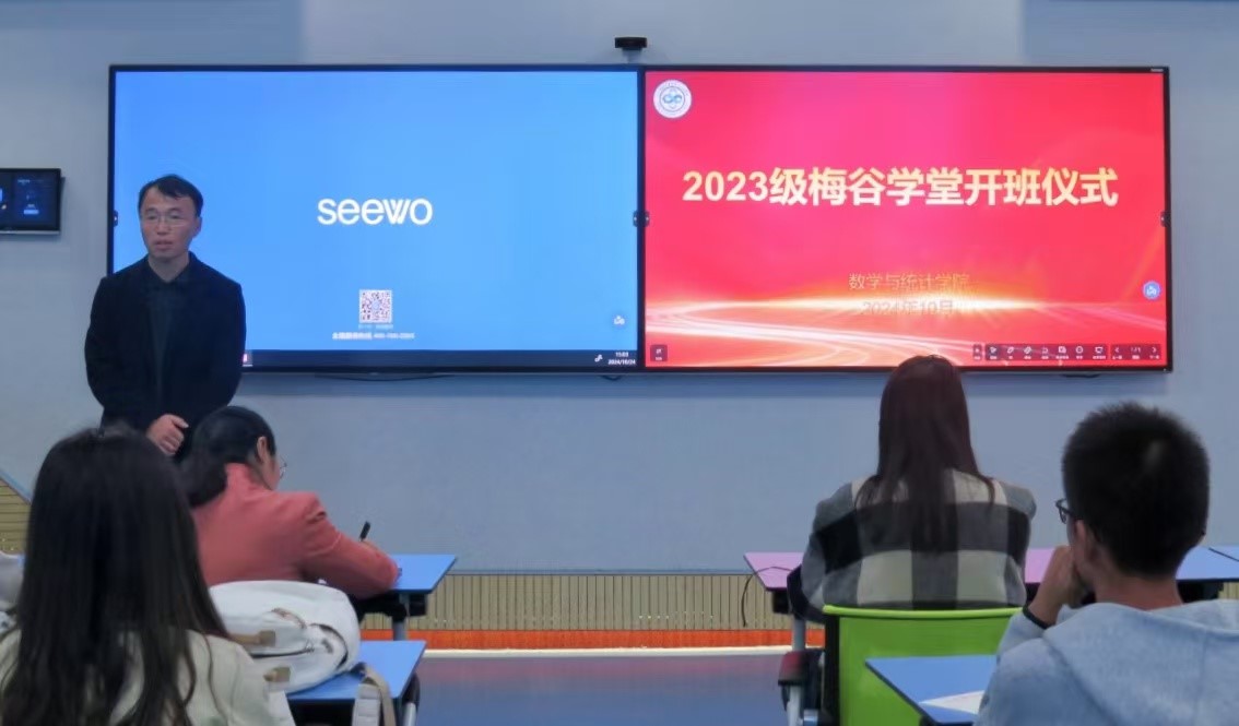 10月24日,数学与统计学院举办2023级梅谷学堂开班仪式。党委副书记葛海滨主持本次活动,副院长刘红星、梅谷学堂班主任张霞、辅导员李媛以及2023级梅谷学堂学员参加本次活动。