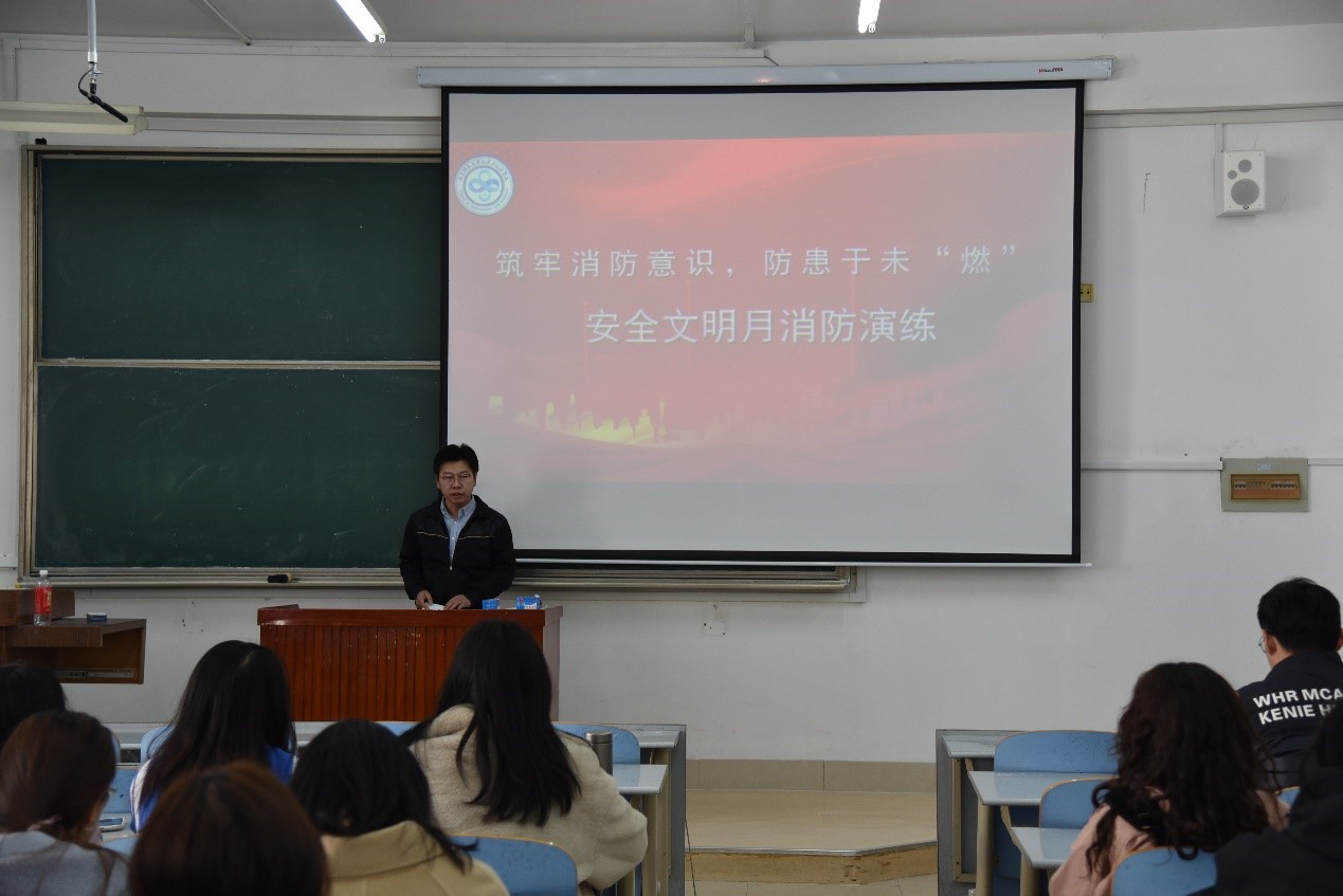 3月15日,我院在B220举行安全文明月系列之消防演练活动。我院特邀安全管理处消防科科长董洪涛主讲消防安全知识,各年级学生干部代表参与活动。