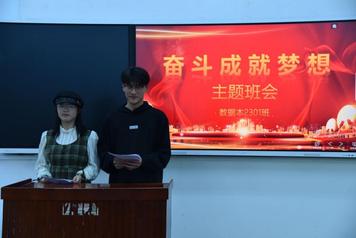 3月7日下午,数学与统计学院数据本2301班在文渊楼B216举办了“奋斗成就梦想”主题班会,旨在激励同学们始终保持高昂的学习斗志,努力奋斗成就自己的人生梦想,更好地成为中华民族伟大复兴的见证者、参与者和贡献者。党委副书记葛海滨、数据本2301班学业班主任朱爱玲,以及数据本2301班全体学生参加了本次主题班会。