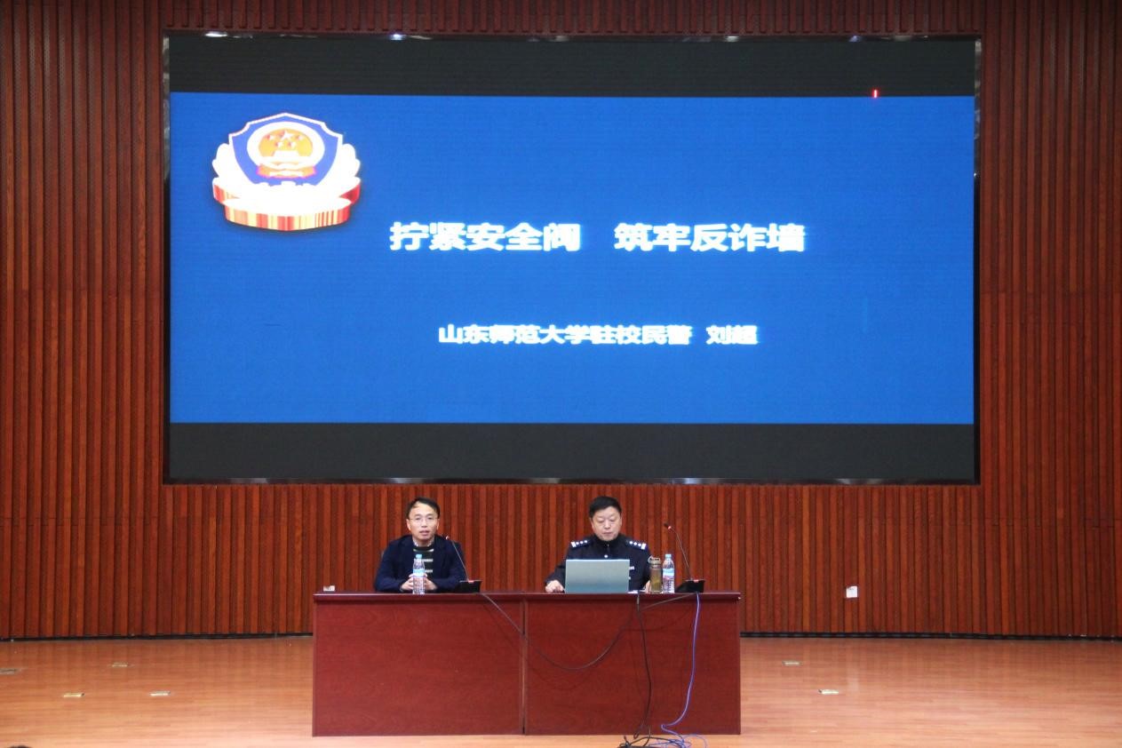 11月9号下午,数学与统计学院于文昌楼105报告厅开展以“拧紧安全阀,筑牢反诈墙”为主题的新生安全教育专题讲座,本次讲座特邀山东师范大学驻校民警刘超警官主讲。学院党委副书记葛海滨、2023级辅导员李媛及学院300余名学生参与会议。