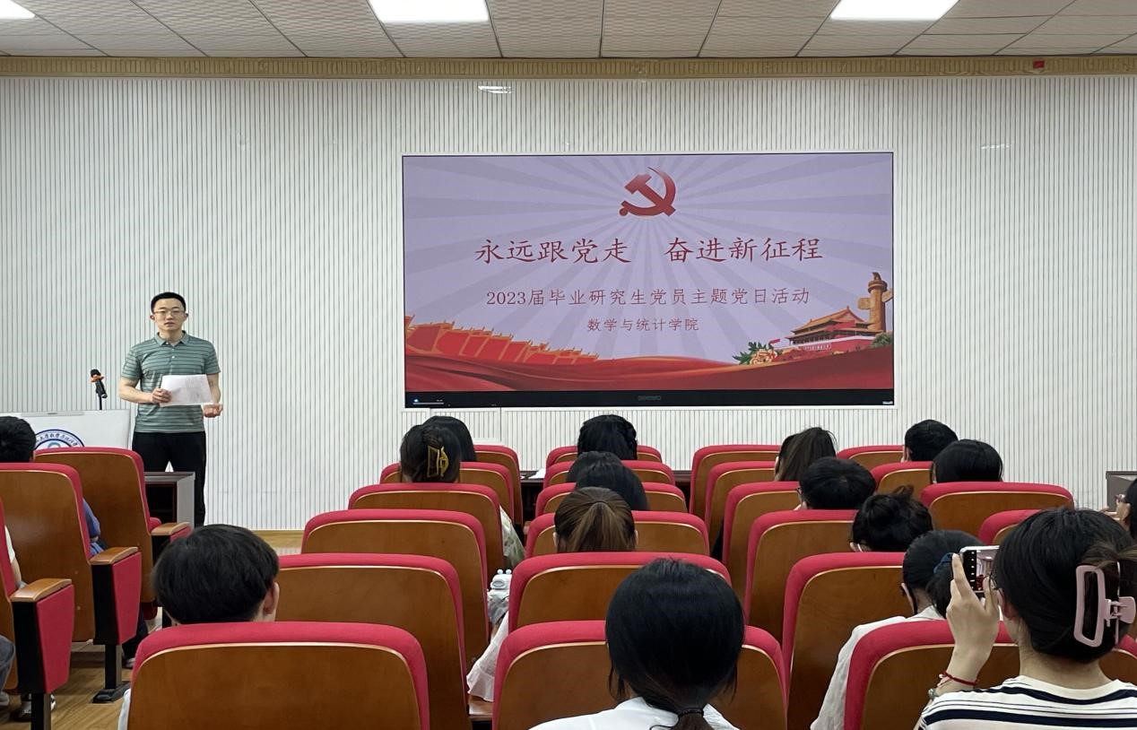 在深入开展学习贯彻习近平新时代中国特色社会主义思想主题教育之际,为进一步加强毕业研究生党员的党性教育,引导毕业生党员以坚定的理想信念走向人生和社会的新征程,数学与统计学院研究生党支部于6月1日在文渊楼B119开展2023届毕业研究生党员主题党日活动,60余名毕业研究生党员参与了本次活动。