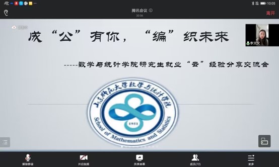 为进一步提升学院研究生求职就业能力,帮助有意向考公和考编的学生更高效地备考,11月19日,数学与统计学院举办第一期研究生就业“云”经验分享交流会,主题为“成‘公’有你,‘编’织未来”。会议邀请了4位2022届毕业研究生进行分享,学院100余名研究生线上参与会议。