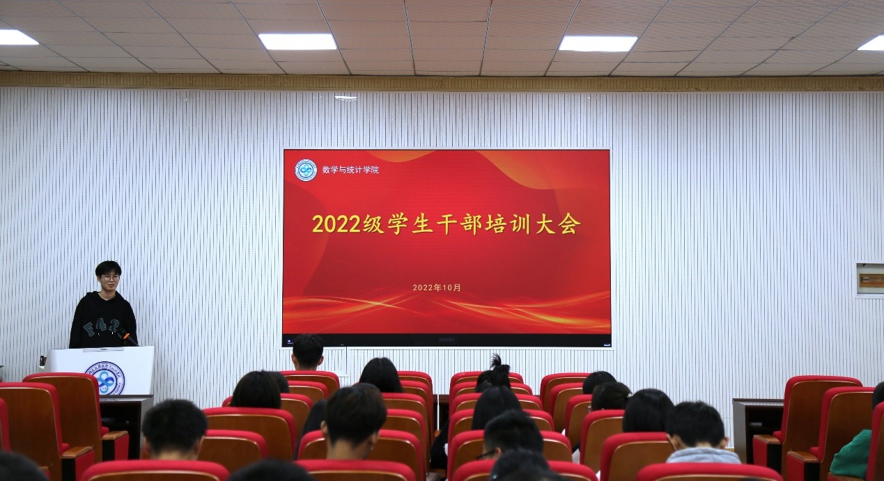 10月12日晚上,数学与统计学院于文渊楼B区119报告厅开展2022级学生干部培训大会,会议由2022级辅导员张世桢主持,全体2022级本科学生干部参会。大会邀请我院优秀学生干部代表杜亚楠,就如何磨练自己成为优秀的班干部进行交流分享。