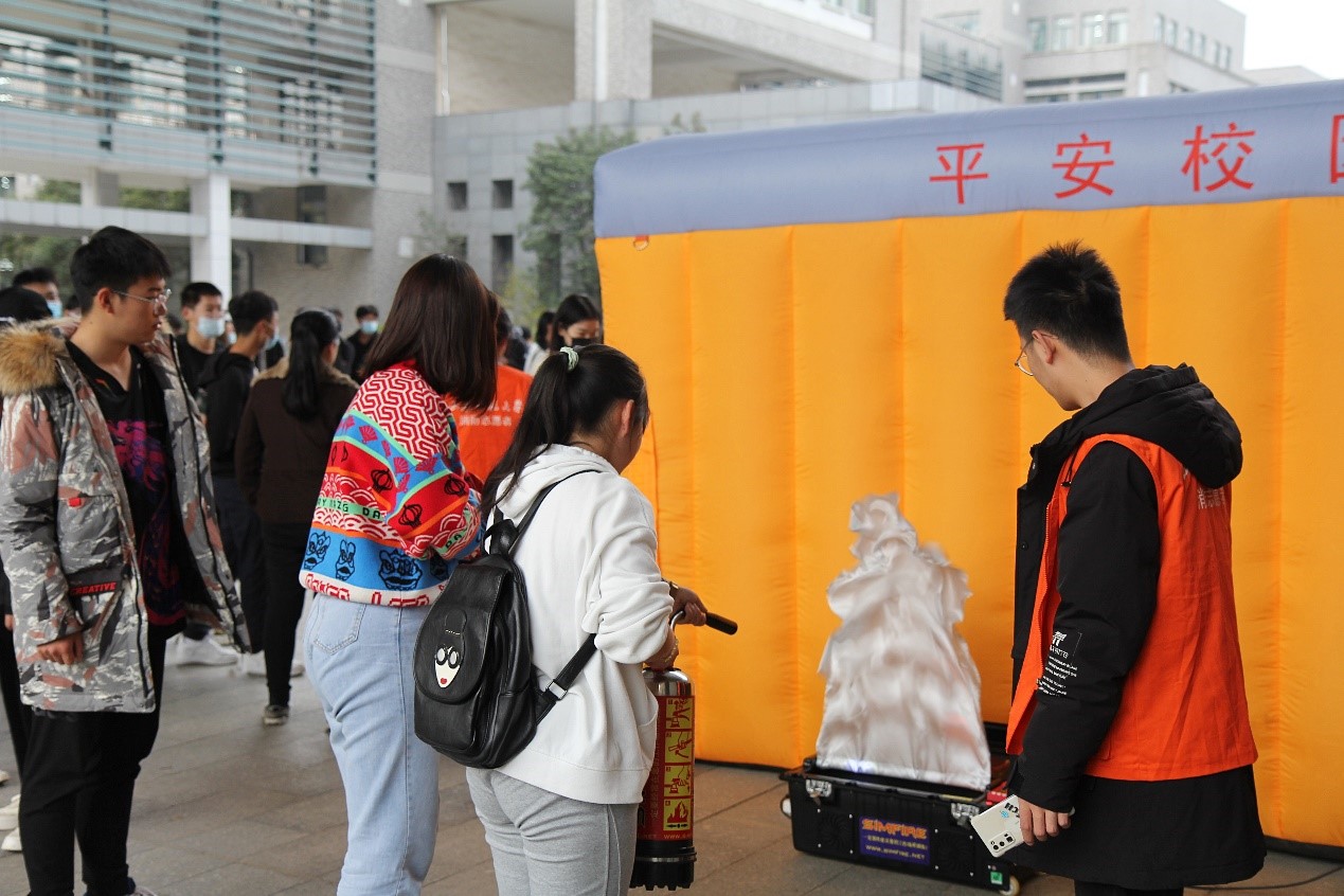 消防安全演练分为消防安全管理规定宣传、常用消防器材使用演示、火场逃生模拟演练和电子灭火器使用演练四部分。2021级辅导员刘菊和我院2021级全体同学共同聆听了消防志愿者关于消防安全基本知识的演讲。