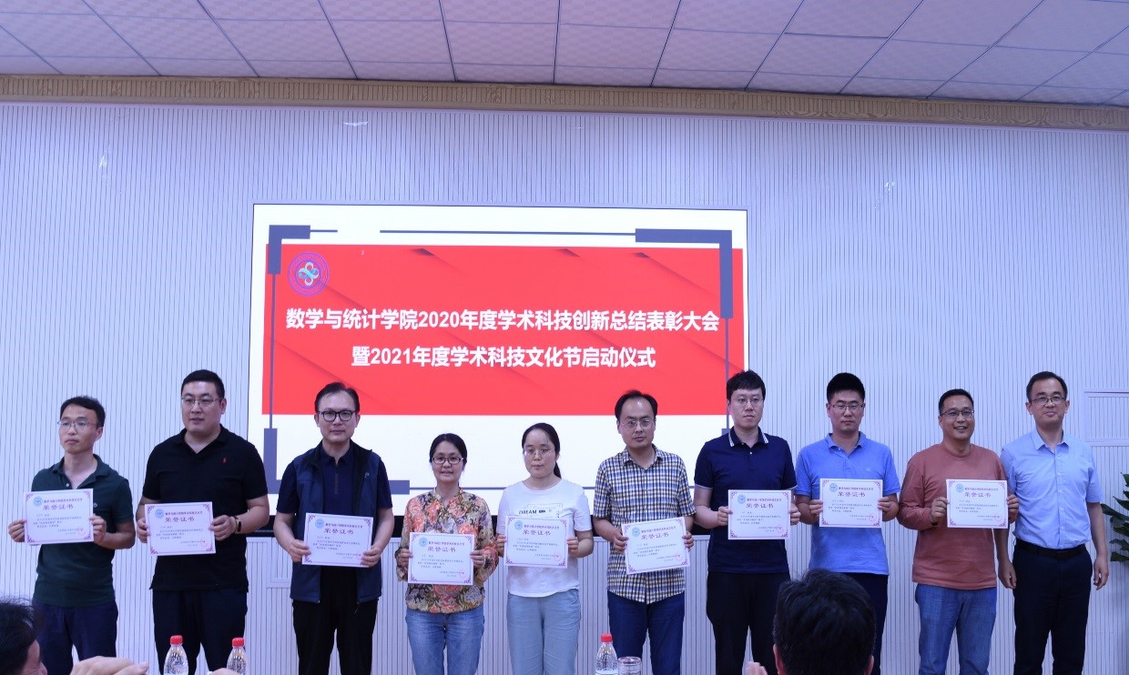 6月3日,数学与统计学院于长清湖校区文渊楼B区119报告厅举办2020年度学术科技创新总结表彰大会暨2021年度学术科技文化节启动仪式。学院党委书记战秉聚、院长李晓迪、党委副书记刘冬梅、副院长赵强、副院长周兆杰及部分常年参与学生科技创新的指导老师出席本次大会。学院一百余名学生代表到场参与。