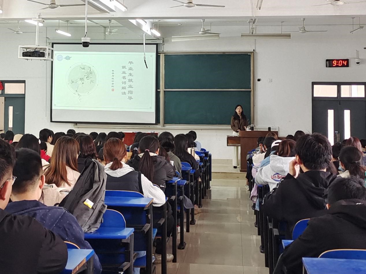 为了让应届毕业生对就业相关名词、就业单位有清晰准确的认识,更好的做好就业签约工作,2021年4月9日,数学与统计学院刘菊于文渊楼B301室为2017级应届毕业生解读就业相关名词,并邀请深圳龙华区教育局及济南黄河双语实验学校来我院宣讲招聘。