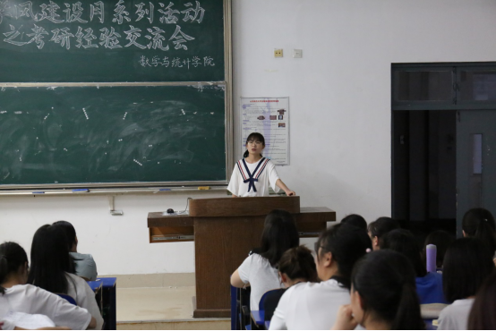 为加深同学们对考研的认识,积极响应学风建设月的号召,5月19日,数学与统计学院于长清湖校区文渊楼B201教室举行数学类考研经验分享交流会。本次交流会邀请了李洪鹏等六位成绩优异的15级同学为大家传授经验,各年级学生百余人到场聆听,现场坐无虚席。