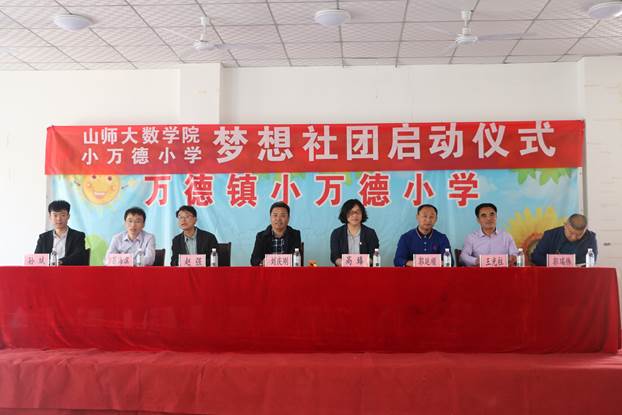 为弘扬“奉献、友爱、互助、进步”的志愿服务精神,4月18日,数学与统计学院于长清区小万德小学礼堂成功举办梦想社团启动仪式。数学与统计学院党委书记刘庆刚、副院长赵强、学工办主任葛海滨、辅导员孙斌以及万德街道办事处副主任高臻、教育办公室主任郭延顺、小万德小学校长王光柱、长清区教育和体育局宣传科郭瑞伟出席此次启动仪式。此外,数学院10余名志愿者、小万德小学近100名学生及家长参加本次启动仪式。