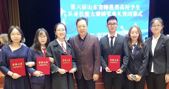2018年10月18日至20日,山东省第六届高等院校师范类学生从业技能大赛决赛在鲁东大学举行。代表数学院参赛的六位学子在傅海伦教授的带领下,不畏强手,斩获一个一等奖,两个二等奖,一个三等奖。其中,张璇获高中数学组一等奖,张健获初中数学组二等奖,刘冬获小学数学组二等奖,张齐获初中数学组三等奖。另外,在今年新增设的钢笔字专项考评中,张璇、张健两位同学均获最高成绩A级水平。同时,傅海伦老师被评为优秀指导教师。