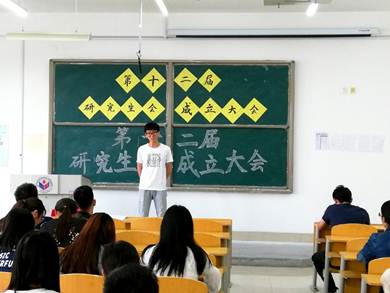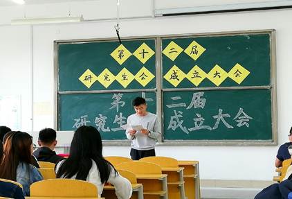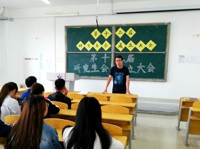 大会开始之前,由副主席刘冬宣读新成员的名单,随后研究生主席王郭振宣布大会正式开始。本次会议主要分为四部分内容,首先由前任研究生会主席宋平对过去一年中的研究生会的各项工作作了总结,提出对下一届研究生会的一些新的要求,并希望各部门之间加强交流,取长补短,让日后的工作更上一层楼。