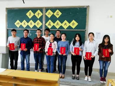 其次,对2017届优秀研究生干部进行表彰,王剑老师给各优秀学生干部颁发荣誉证书并合影留念。
