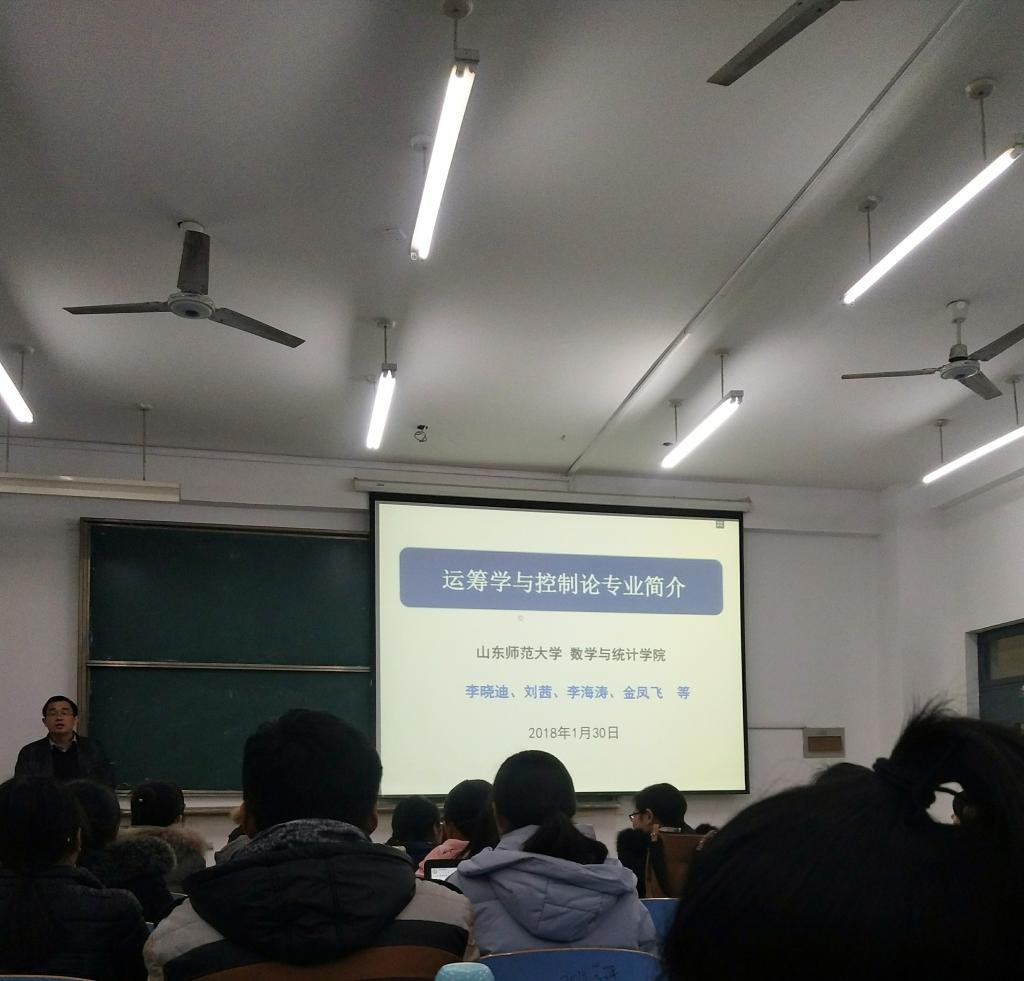 为进一步丰富同学们在运筹学和控制论方面的知识,1月30日,数学与统计学院于长清湖校区综合教学楼B区320教室举办“学位点方系列讲座之运筹学与控制论”报告会。本次报告会由数学院学工办、团委举办,由数学院李晓迪、刘茜、李海涛、金凤飞担任主讲人,数学院200余名同学到场聆听。