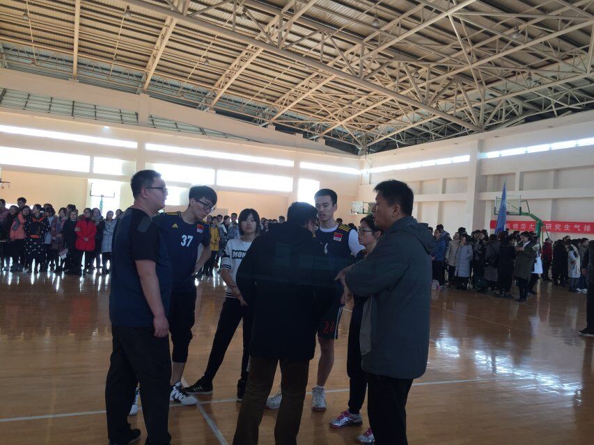 比赛过程中,领导及老师们亲临指导、助阵使参赛队员们感到十分温暖。此外,各院自发组成的拉拉队给予了队员们极大地鼓舞和帮助。队员们在赛场上挥洒汗水、奋力拼搏,每一个传球都凝聚着智慧与团结,每一次接球都尽显他们青春的活力。整个赛场上充满呐喊、助威、喝彩、拼搏、活力。赛后,学校举行了颁奖仪式,党委研究生工作部及研究生院领导出席了颁奖仪式并为获奖团体和个人颁发奖杯和荣誉证书,数学与统计学院党委副书记王奎峰、研究生招生管理办公室主任王剑等与参赛人员合影留念。