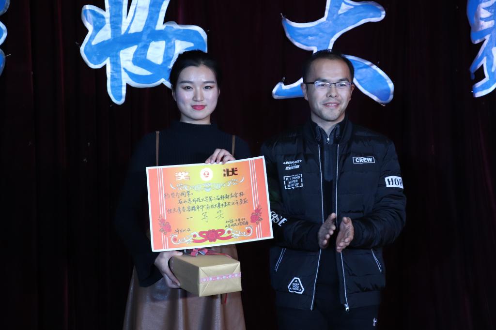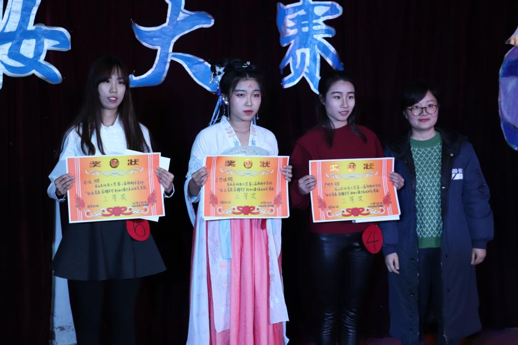 第二环节为彩妆与礼仪知识竞答环节,各团队化妆师依次上台,自由选择难度类型回答三道问题。11号化妆师李佳昕主攻低分段,连续选择两道简单区域的问题,步步为营;15号化妆师杨晓彤则信心十足,她连克数道困难区域题目,为胜利再添有力砝码。第二环节结束,主办方表演走秀节目《satisfaction》,激昂澎湃,引爆现场气氛,为观众们献上了一场视听上的饕餮盛宴。最后,评委们秉承着公正客观的原则,综合两环节及场外微信投票进行评分,评选出来自音乐学院的15号团队荣获一等奖,来自心理学院的11号团队等两个队伍获得二等奖,来自经济学院的6号团队等三支队伍获得三等奖,来自数学与统计学院的8号团队等十二支队伍获得优秀奖,16号等三支队伍获得最佳人气奖。颁奖留影后,本次大赛圆满落下帷幕。