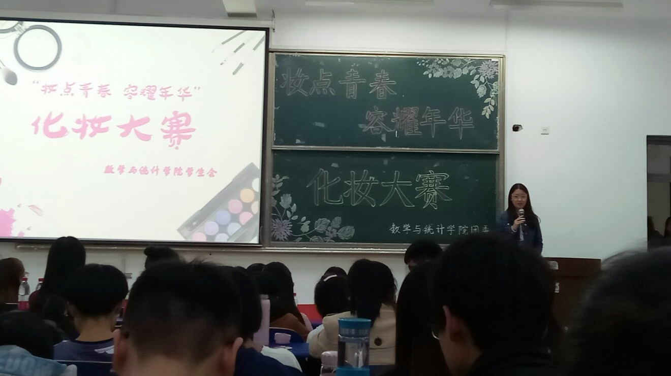 为丰富同学们的校园文化生活,10月21日,数学与统计学院于长清湖校区综合教学楼B区301教室举办“妆点青春,容耀年华”化妆大赛。本次活动由数学院团委主办,2016、2017级同学踊跃参赛。
