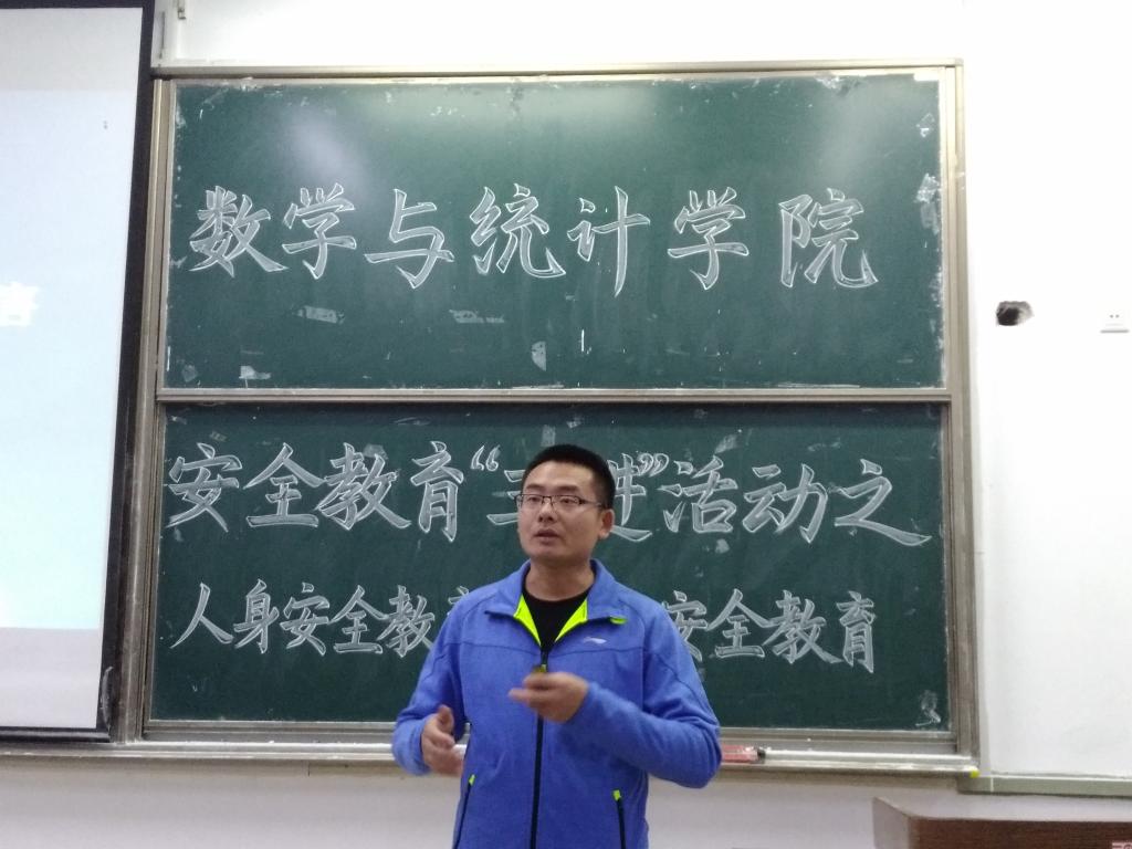 为增强同学们的自我保护意识,排除同学们在学习生活中的安全隐患,10月12日,数学与统计学院于长清湖校区综合教学楼B区301教室举办安全教育“三进”活动之人身安全教育与实践安全教育,赵以亮担任主讲人,2017级约二百六十名学生到场聆听。