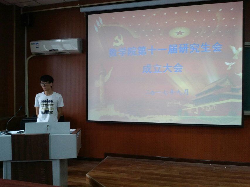 2017年9月25日上午,为让各研究生干部对自身工作、职能有更深的了解,顺利开展组织工作,数学与统计学院第十一届研究生成立大会在长清校区B434举行,会议由研二班长宋平主持,研究生管理办公室主任王剑老师出席了此次会议。