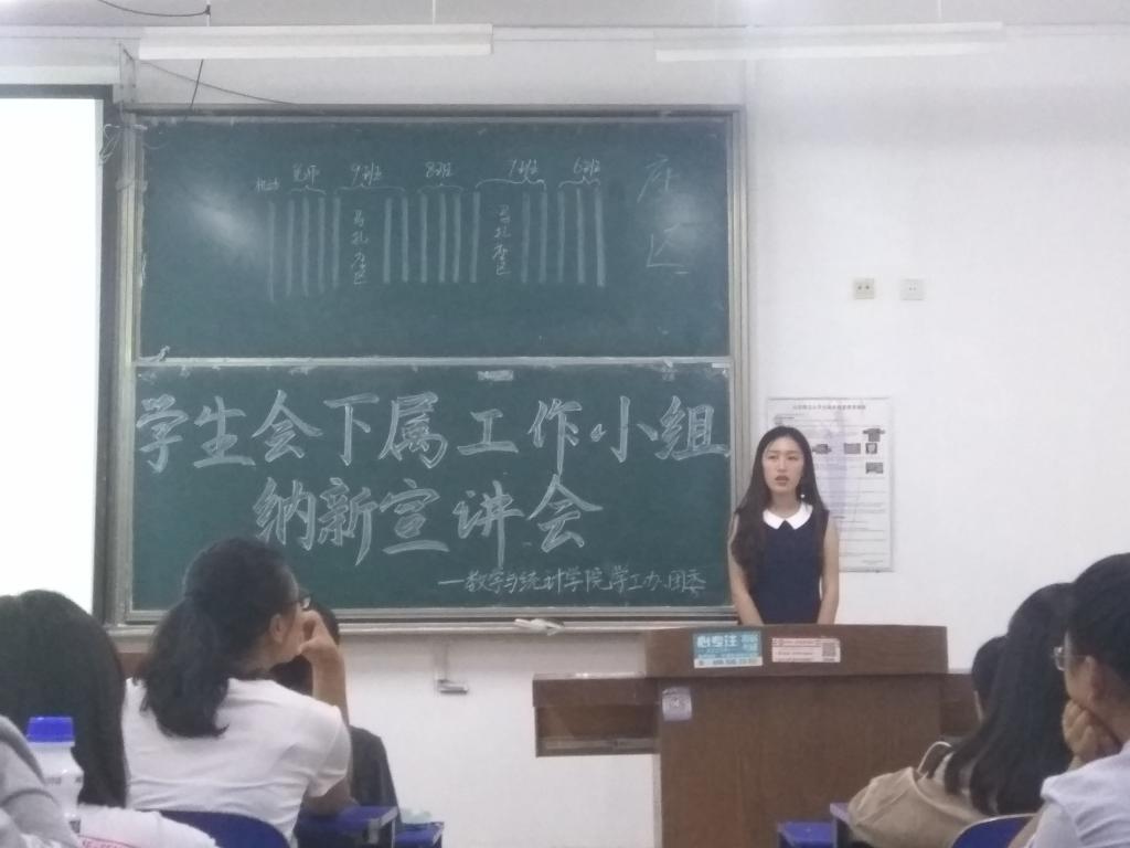 为吸纳优秀人才,9月24日,数学与统计学院于长清湖校区综合教学楼B区201教室举办学生会下属工作小组纳新宣讲会。本次宣讲会由数学院团委举办,学生会下属工作小组、院体育队相关负责人担任主讲,2017级百余名同学到场聆听。