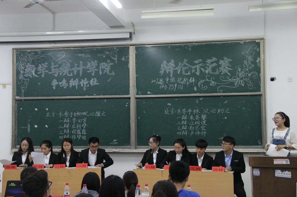 为了向2017级新生展示数学院的辩论风采,培养学生对辩论的兴趣,9月23日晚,数学与统计学院于长清湖校区综合教学楼C区301教室举办辩论表演赛,本次辩论表演赛由数学与统计学院主办,2017级200余名学生到场观看比赛。
