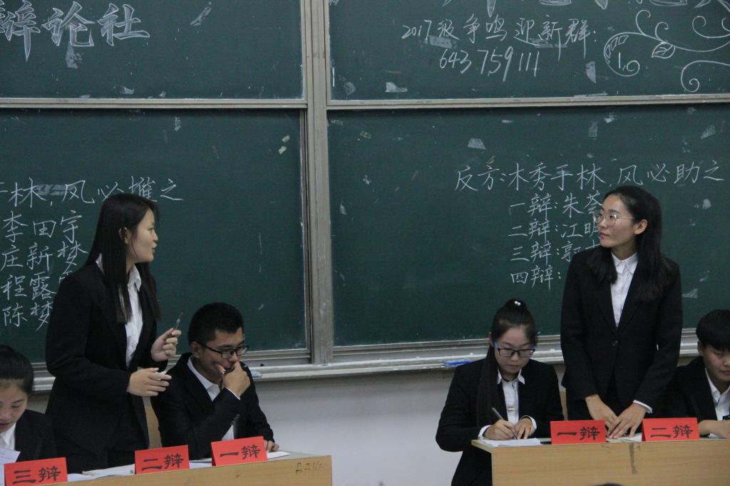 本次辩论赛的正方辩题是“木秀于林,风必摧之”,而反方辩题是“木秀于林,风必助之”,双方辩手从日常生活角度出发,深度挖掘“风”之于良木的利害关系,具有深刻的现实意义。正方辩手首先给出了“木秀于林,风必摧之”的定义,即“比喻具有极高才华的人会因主观或客观因素受到外界的干扰和阻挠”,同时他们也给出了“木秀于林,风必摧之”的几点原因。随后,反方明确提出了他们的观点,即“才能出众的人,不仅不会被打压,还会得到更多人的帮助”。双方辩手思路清晰,答辩流畅,针锋相对。自由辩环节时,正方以爱因斯坦为例,以此证明在当时的社会环境下,过于优秀的人更容易被打压。反方也随即指出,爱因斯坦的优秀虽然在当时没有被认可,但随着时间的推移,越来越多的人已经认可了他的优秀,因此不能称为“摧之”。辩论赛最后,正方四辩和反方四辩分别总结了各方观点,其清晰的思路与精彩的陈词获得了在场观众热烈的掌声。辩论赛结束后是观众提问环节,在场的2017级学生积极踊跃地向辩手发问,并提出自己的观点,辩手也对观众所提的问题做出了一一答复。至此,本次辩论表演赛圆满结束。