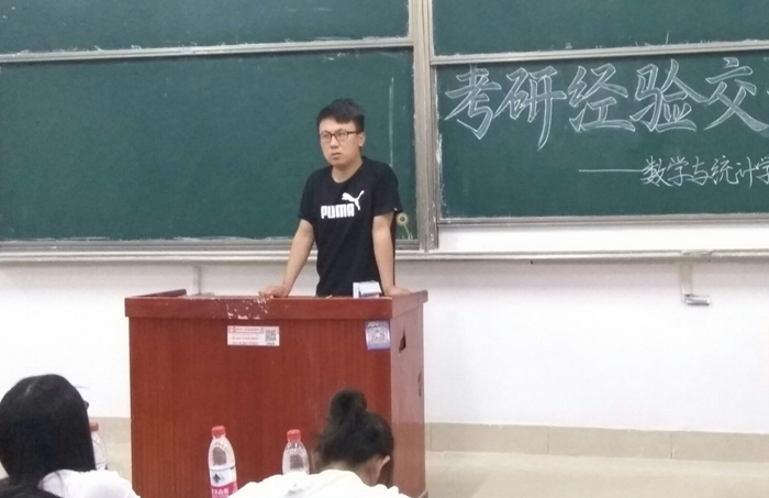 5月5日,数学与统计学院于长清湖校区综合教学楼B区201教室举办数学与应用数学专业考研经验交流会。本次报告会由数学院团委举办,2013级优秀考研学生范青、张林等担任主讲人,2014级百余名同学到场聆听。