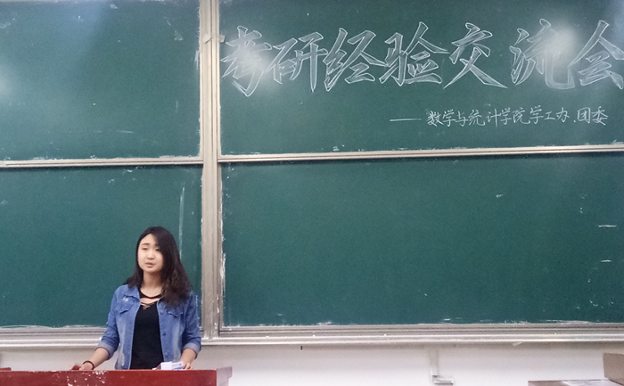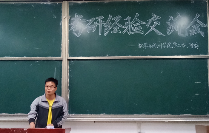 为了帮助同学们进一步了解考研方面的相关知识,合理地备战考研。5月4日晚,数学与统计学院于长清湖校区综合教学楼B区201教室举办非师范类考研经验交流会。本次交流会由数学院学工办、团委主办,由2013级展培元、刘媛等八名同学担任主讲人。面向全体2014级同学展开。