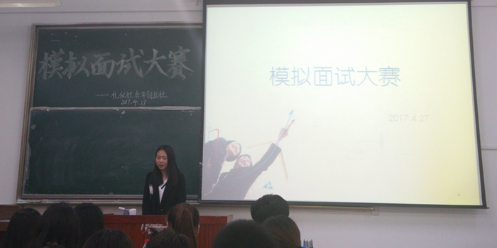 为了让同学们认识到当前社会考研与就业形式的严峻性,进一步提高同学们的面试技能,4月27日,数学与统计学院于长清湖校区综合教学楼B区218教室举办模拟面试大赛。本次大赛由数学与统计学院团委举办,面向2015级、2016级全体同学展开。
