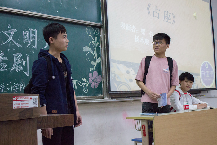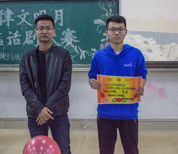 为提高学生自律意识,规范学生们的校园生活,4月22日,数学与统计学院于长清湖校区综合教学楼C区127室举办自律文明月系列活动之“‘律’色之风,文明同行”小品话剧大赛。