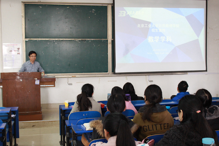 3月27日下午,数学与统计学院于长清湖校区综合教学楼C区236教室举行了北京工业大学研究生招生宣讲会。此次宣讲会特邀北京工业大学数理学院博士生导师、科研副院长徐大川教授作为宣讲人,2014级全体同学聆听了此次宣讲会。