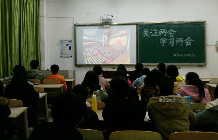 为深入学习和贯彻“两会”精神,提高同学们的政治素养,3月4日晚,数学与统计学院于长清湖校区综合教学楼C区105教室举办“关注两会,学习两会”活动。本次活动由数学院本科党支部主办,理论学习社承办,理论学习社副社长张晶、徐云鹏担任主持,本科生党员及入党积极分子共30余名同学参与此次活动。