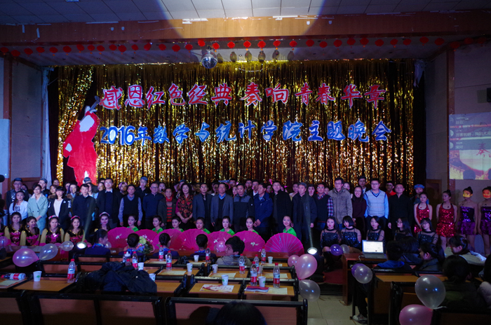 1225日晚,数学与统计学院于长清湖校区综合教学楼C101报告厅举办感恩红色经典,奏响青春华章元旦主题晚会,学院领导班子、教师代表以及2016级学生共500余人欢聚一堂,共同观赏精彩绝伦的晚会。
