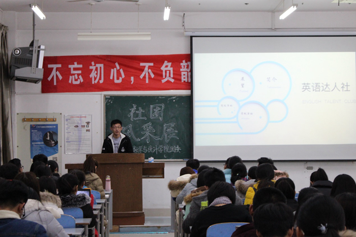 为推动学院社团文化建设,丰富同学们的课余生活,1223日,数学与统计学院于长清湖校区综合教学楼C109教室举办“绚丽社团,喝彩青春”社团风采展活动。本次活动由数学院团委主办,学院14个社团及百余名观众共同参加。