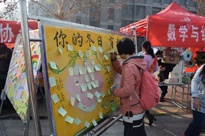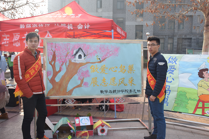 为迎接国际志愿者日的到来,唤醒同学们对小动物们的关爱,激起创新环保意识,12月4日至5日,数学与统计学院团委、物理与电子科学学院团委和马克思主义学院团委于长清湖校区天颐广场联合举办“做爱心鸟巢,展志愿风采”活动。