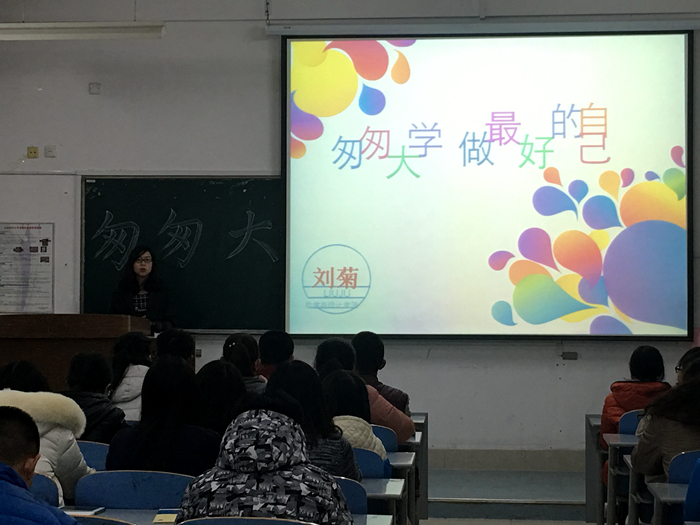 为了呼吁新生关注心理健康,追求更高的生活品质,引导他们清楚的认识自我,在新的环境中更好的成长成才,11月30日,数学与统计学院于长清湖校区综合教学楼C区109教室举办“匆匆大学 做最好的自己”主题讲座,本次讲座由刘菊担任主讲人,2016级心理委员及舍长聆听讲座。