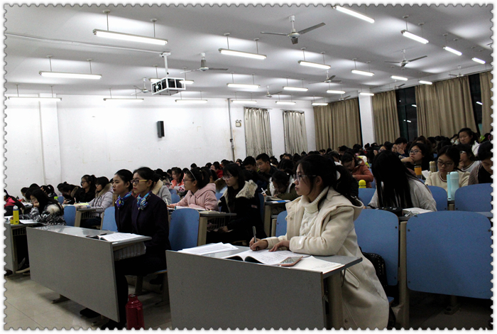 报告会伊始,程红梅结合数学分析学科知识指出数学学科具有高度的抽象性和严密的逻辑性。随后,她从“确立学习目标”、“调整学习方法”、“做好预习和复习”、“课外拓展”等方面向同学们介绍如何学好大学数学。针对同学们从紧张的高中来到宽松的大学感到迷茫、没有明确目标、容易松懈等现象,她建议同学们要做到自觉、自律,通过建立学习目标,以适应大学校园学习气氛。随后,她着重向同学们介绍学习大学数学的方法。其中她强调自学的重要性,指出自学能力的高低是影响学业成绩高低的最重要因素。自学能力包括:能独立确定学习目标、能对老师提出质疑、具有较强总结归纳知识点能力。紧接着,她向同学们阐述预习与复习的重要性以及要求。通过课前预习,做到对该节内容有一个系统的认识,形成知识体系框架。复习包括阅读教材、笔记、参考书,对所学内容做到总体而又全面的了解。然后,她指出在掌握基本概念和定理的前提下多做题,但是不主张“题海战术”,而是应多做典型题、精练题,做到一题多解、一题多变,提高解题能力。最后,她针对同学们关于学习数学的相关问题做了详细的回答。程红梅幽默风趣的语言、深入浅出的讲解在激发了同学们的学习兴趣的同时也赢得了同学们的阵阵掌声。