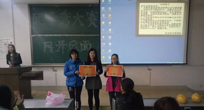 比赛形式多样,可配音,可自制视频,活动通知一经下达,就得到同学们的积极响应,参赛者们充分发挥各自的配音才能,短短五天时间,学院共征得参赛作品40余份。比赛伊始,主持人对比赛规则进行了简单介绍,比赛作品共分为九组,每组由嘉宾随机抽取五个作品分别展示。其中,2015级数学1502班的艾丹为微电影《我爱爸爸》配音,嗓音柔美,情感细腻,表现了父亲的伟大和小女孩的乖巧懂事,整部作品洋溢着浓浓的父女情,令在场观众产生强烈的情感共鸣;2015级数学1503班的侯春蕾等同学为央视新闻联播配音,她们字正腔圆,穿插了各种影视片段,博得观众的一致好评;2015级数学1504班的赵亚琪等同学自制视频,契合双十一购物风的话题,对比购物前和购物后截然不同的两种状态,用搞笑打趣的形式展现了现代大学生的日常生活,揭示了网购给人们生活带来的影响;2015级数金1502班的孙丹丹等同学带来方言版综艺节目,幽默搞笑,精彩不断,其极具特点的方言赢得了观众的热烈掌声。最终,评委本着公平公正的原则,评选出艾丹、侯春蕾获一等奖,赵亚琪、刘伟等五组同学获得二等奖,张明晓、李佳琳等五组同学获得三等奖,孙雅丽、陈明会等十组同学获得优秀奖。