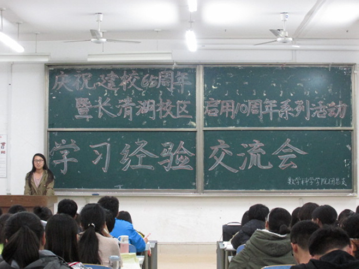 为了帮助2015级新生尽快适应大学学习生活,10月26日晚,数学科学学院于长清湖校区综合教学楼C127、C129教室举办庆祝建校65周年暨长清湖校区启用十周年系列活动之新生学习经验交流会。2012级、2013级三位优秀学生代表参加了此次会议,2015级全体同学共同聆听了此次经验交流会。