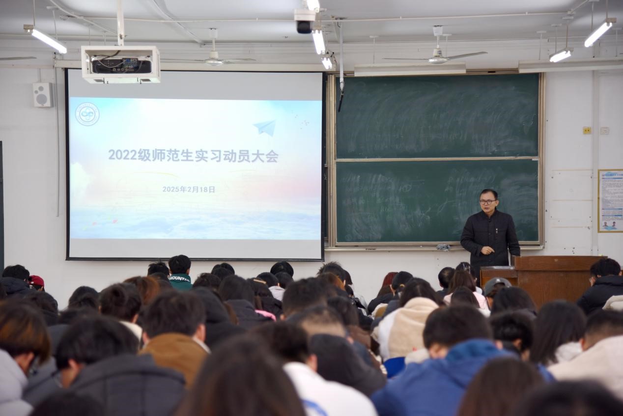 2月18日,我院在文渊楼B区201教室举办2022级师范生实习动员大会。学院相关领导及教师代表出席会议,2022级全体师范生参加本次会议。