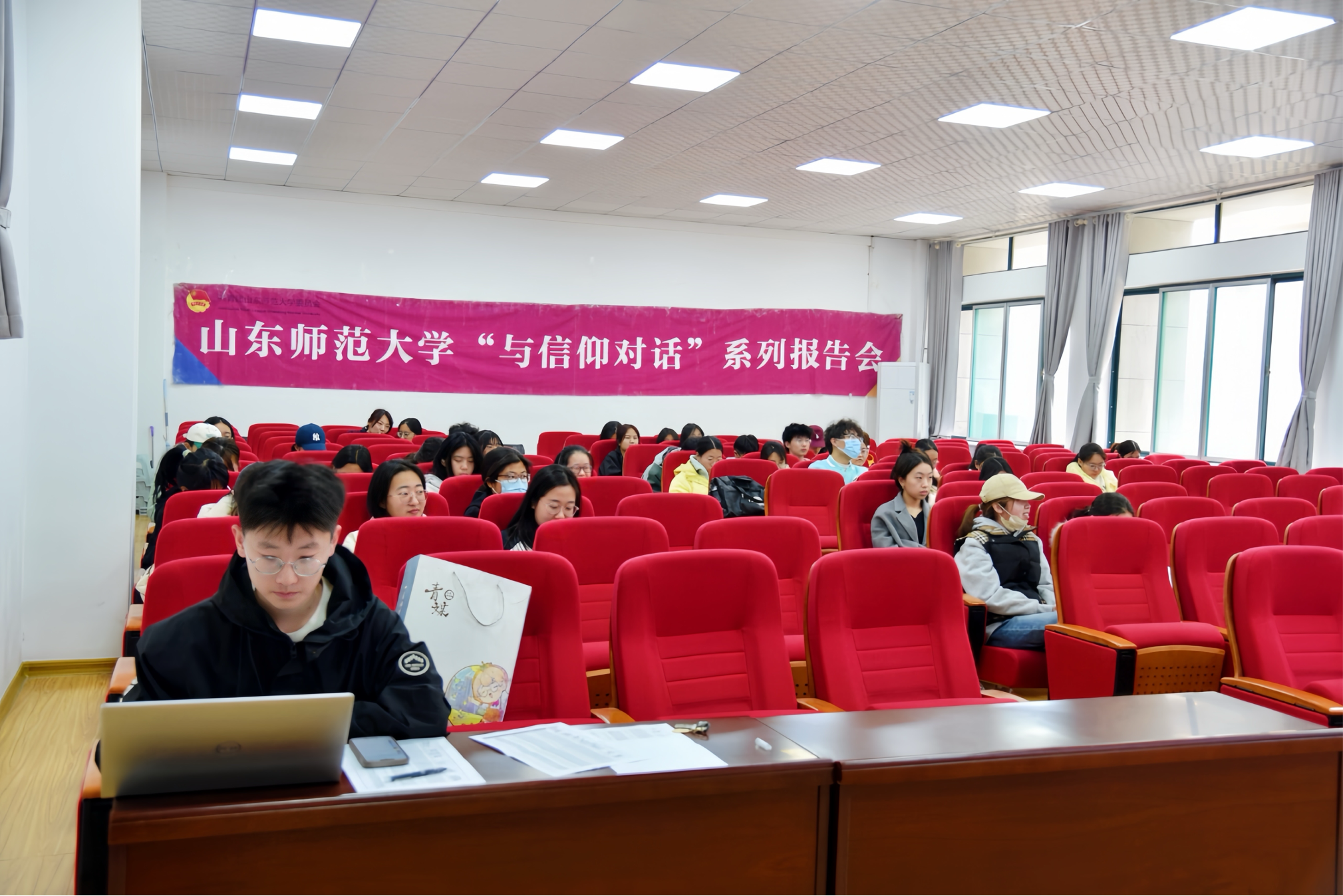 3月11日,数学与统计学院于文渊楼B119报告厅举办以“筑梦引航·学生就业生涯规划”为主题的“与信仰对话”系列报告会。本次讲座由我院青年教师王诗桐主讲,学院部分本科生参加讲座。