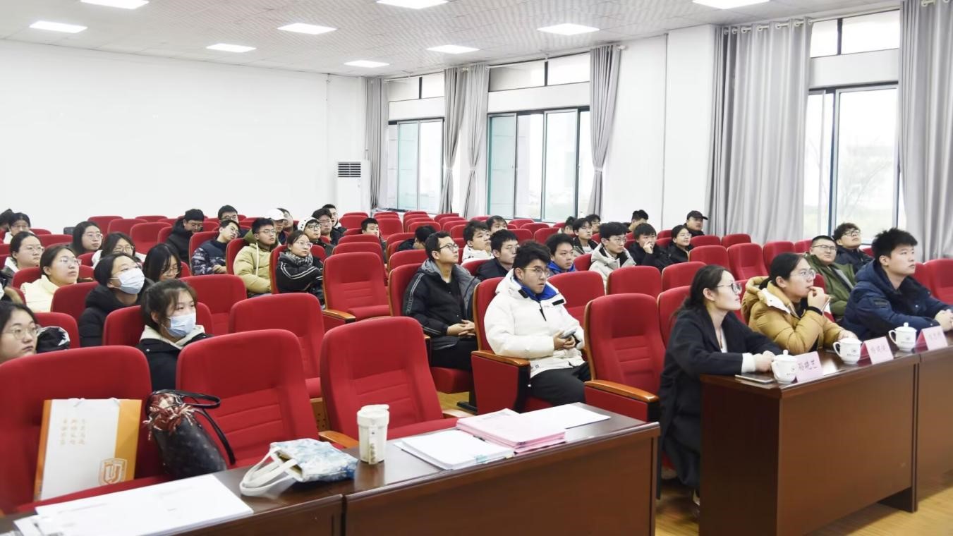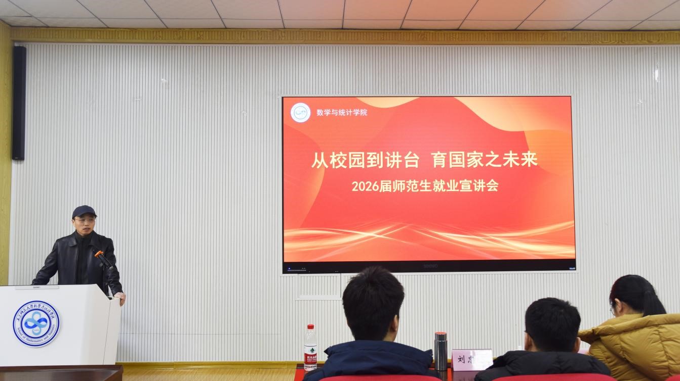 12月24日,数学与统计学院在长清湖校区文渊楼B119报告厅举办校友就业指导暨章丘双语学校招聘宣讲会。学院校友、章丘双语学校教师刘忠彬、杨健健、张天宇、孙晓艺受邀参会,与2026届师范类毕业生交流。会议由学院党委副书记葛海滨主持。