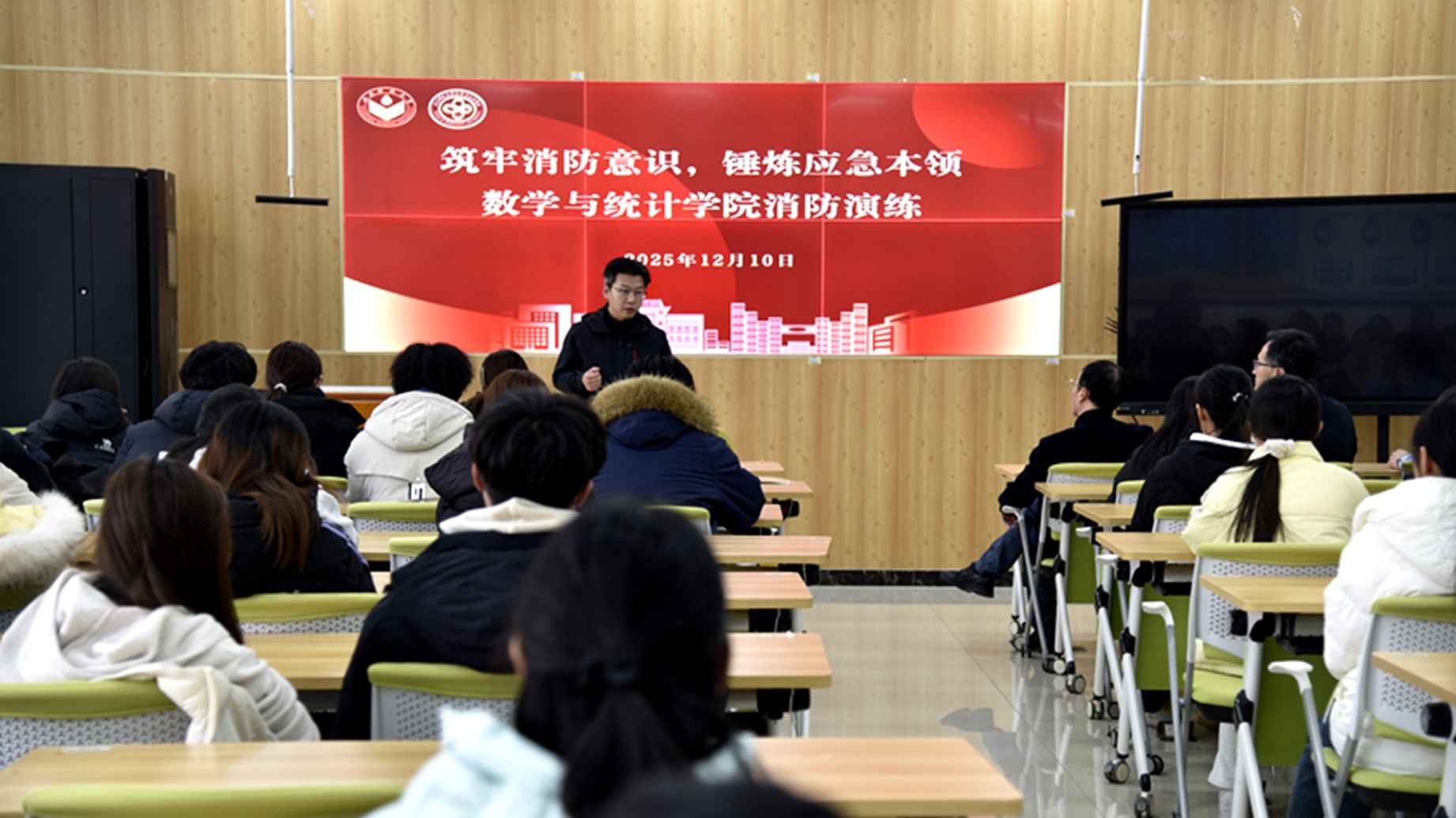 12月10日,数学与统计学院开展“筑牢消防意识,锤炼应急本领”冬季消防演练活动。学校安全管理处消防科科长董洪涛受邀到场讲授消防安全知识,学院党委副书记、纪委书记葛海滨,副院长周兆杰、部分教师及各年级学生干部代表参与活动。