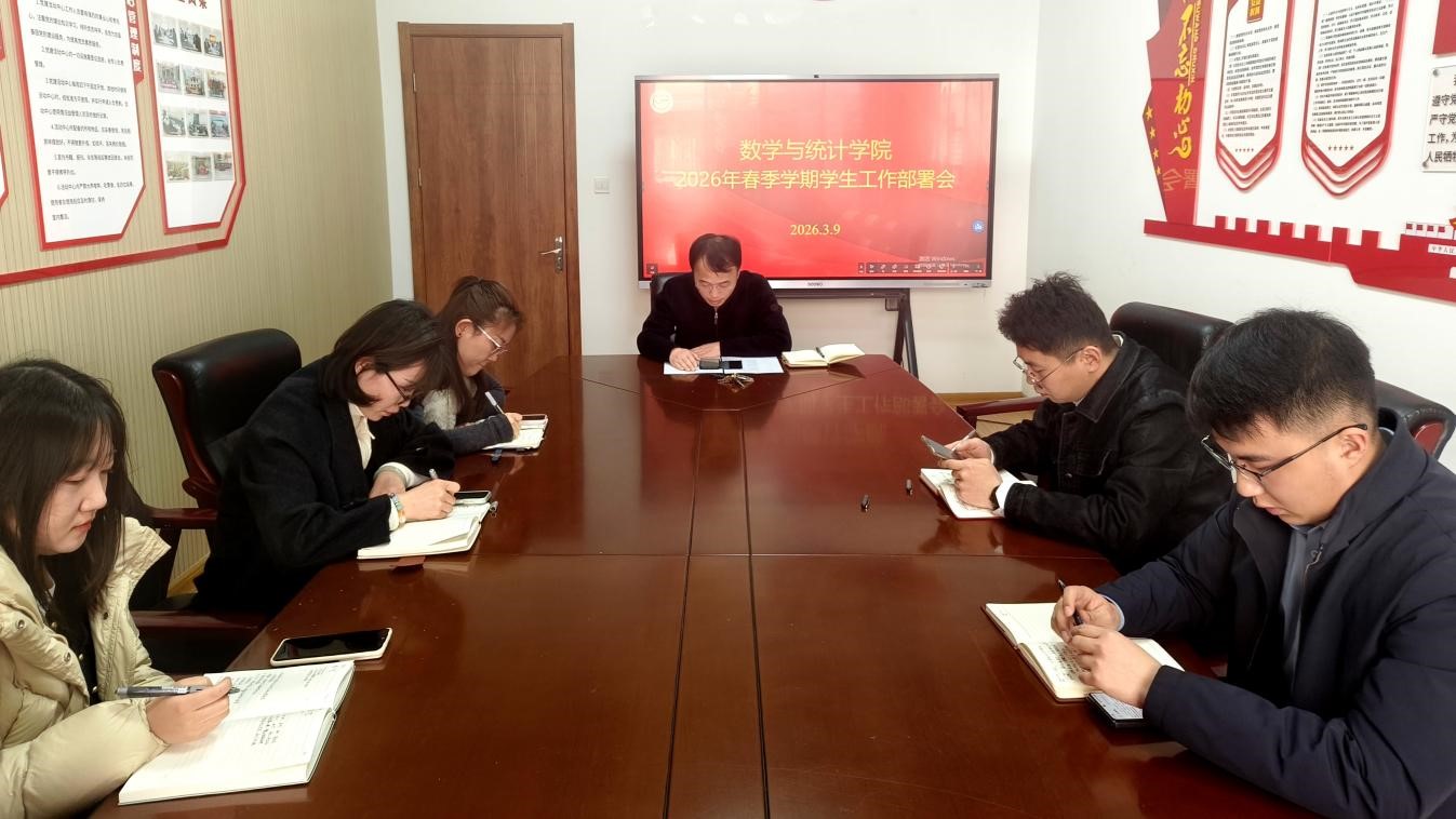 3月9日下午,数学与统计学院在长清湖校区文渊楼B119会议室召开2026年春季学期学生工作部署会,全体辅导员参加会议。会议由学院党委副书记、纪委书记葛海滨主持。