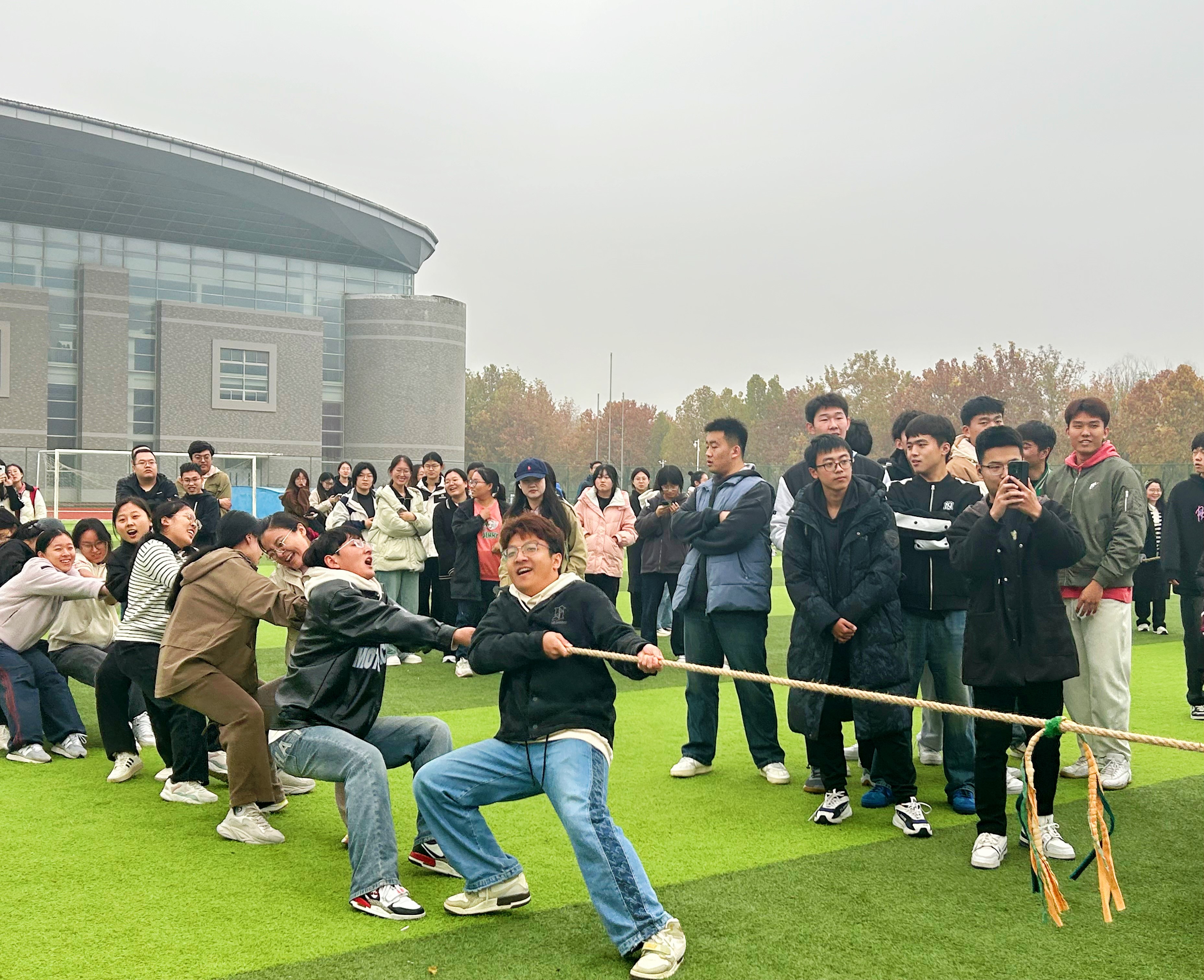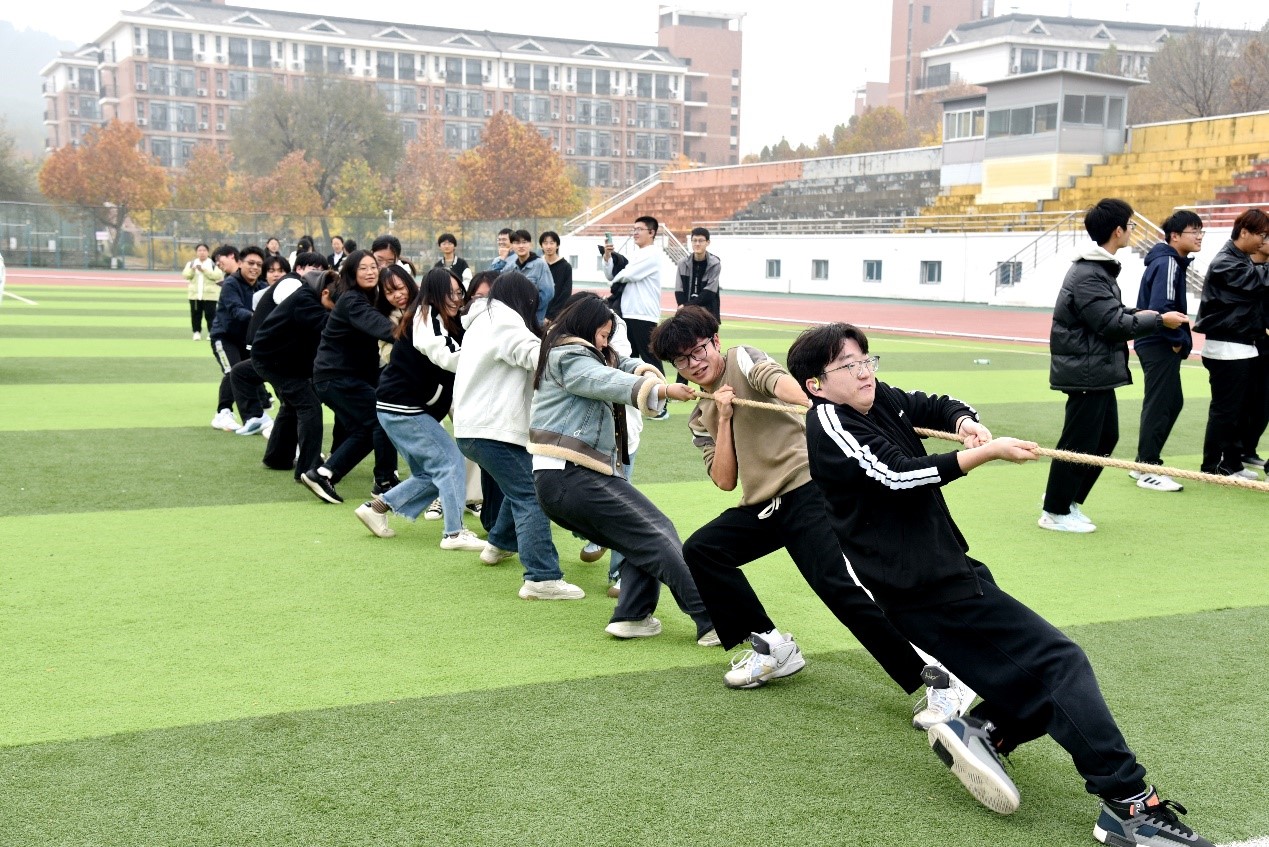 11月14日,数学与统计学院于长清湖校区田径场举办拔河比赛,2023、2024级研究生和本科生积极参与,本科生辅导员武雪娟参加并为参赛同学加油助威。